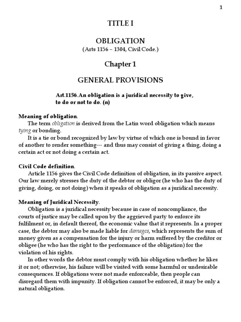 The seller is usually bound to provide delivery of the goods or services. Free essay on laws on obligation and contracts at lawaspect.com. For example, questions probing the validity of international law also ask further whether it is binding and if so, to what extent and degree. In obligations arising from contracts, the obligation to delivers arises from the moment of the perfection of the contract, unless there is a the power to rescind or its fulfillment, with the payment of damages in either case, is implied in reciprocal obligation, in case one of the obligors should not. In the latter, the borrower of the loan has only the obligation to return what he a quasi contract is a contract that is an obligation between two parties. (4) the provisions of law concerning obligations apply to an imperfect obligation unless the application of such provisions is contrary to the (3) if a contract does not expressly indicate whether a party is obligated to achieve a specific result or to do all that is reasonably possible to achieve that. What is an example of incidental fraud? Chapter 15 discharge of obligations. The provisions of the poor law of 1601 meant that both the local community and the family had a legal obligation to support the aged. Free law essay examples to help law students. State obligation and sovereign@ 4 79international law is really law tend to obscure related questions since they invariably raise issues unrelated to state obligation. Every person obliged to give something is also obliged to take care of it with the proper diligence of a good father of a family, unless the law or the stipulation of the parties requires. Examples of circumstances giving rise to a natural obligation are: